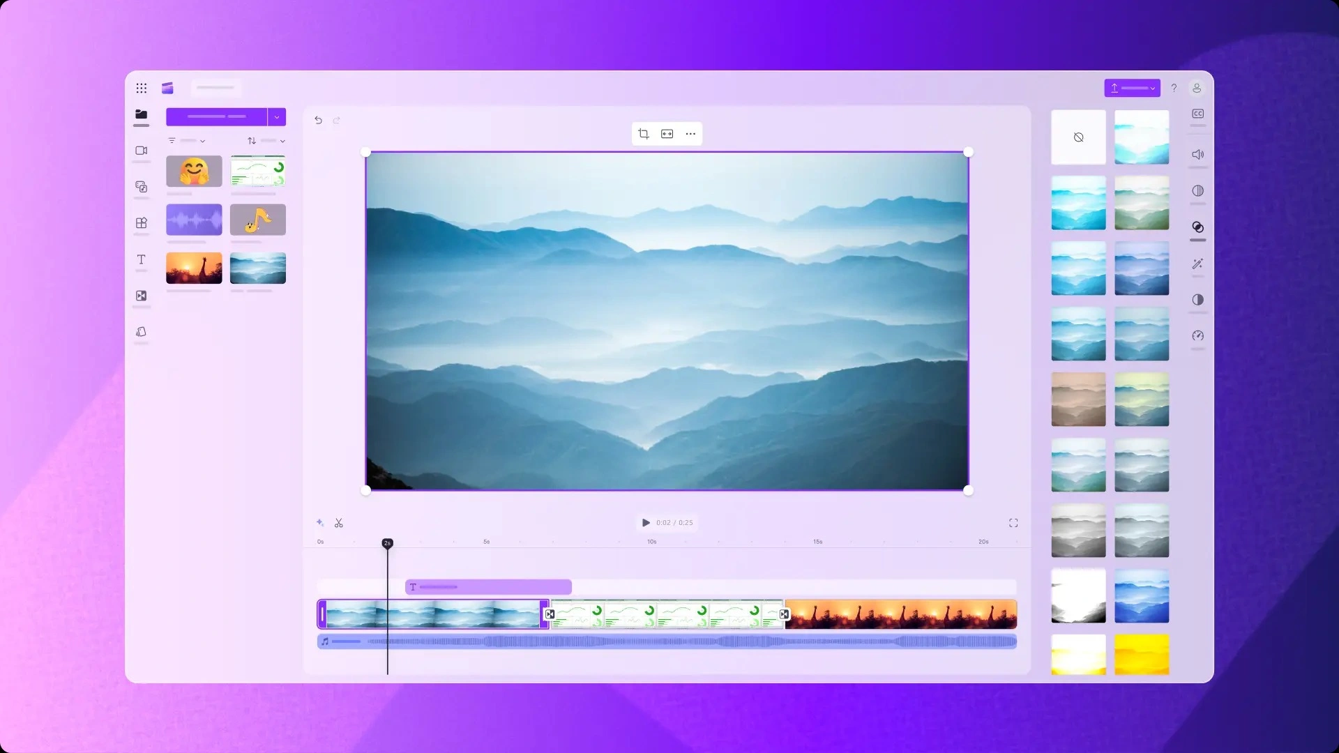 Microsoft Clipchamp Para Que Serve fornece muitos efeitos visuais e ferramentas de edição para melhorar o conteúdo de vídeo. Os recursos da plataforma, como filtros, transições, sobreposições de texto e imagens animadas, ajudam os usuários a produzir projetos sofisticados. A ferramenta de áudio oferece uma biblioteca de música e efeitos sonoros isentos de royalties, bem como ferramentas para cortar e gravar dublagens dentro do programa.