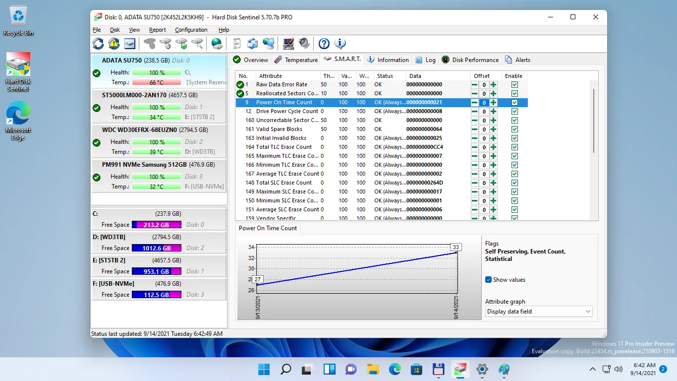- O Hard Disk Sentinel Pro 5.61 Portable monitoriza a temperatura das suas unidades, as propriedades S. M. A. R. T., A degradação do desempenho e as taxas de erro para detetar potenciais falhas desde o início.